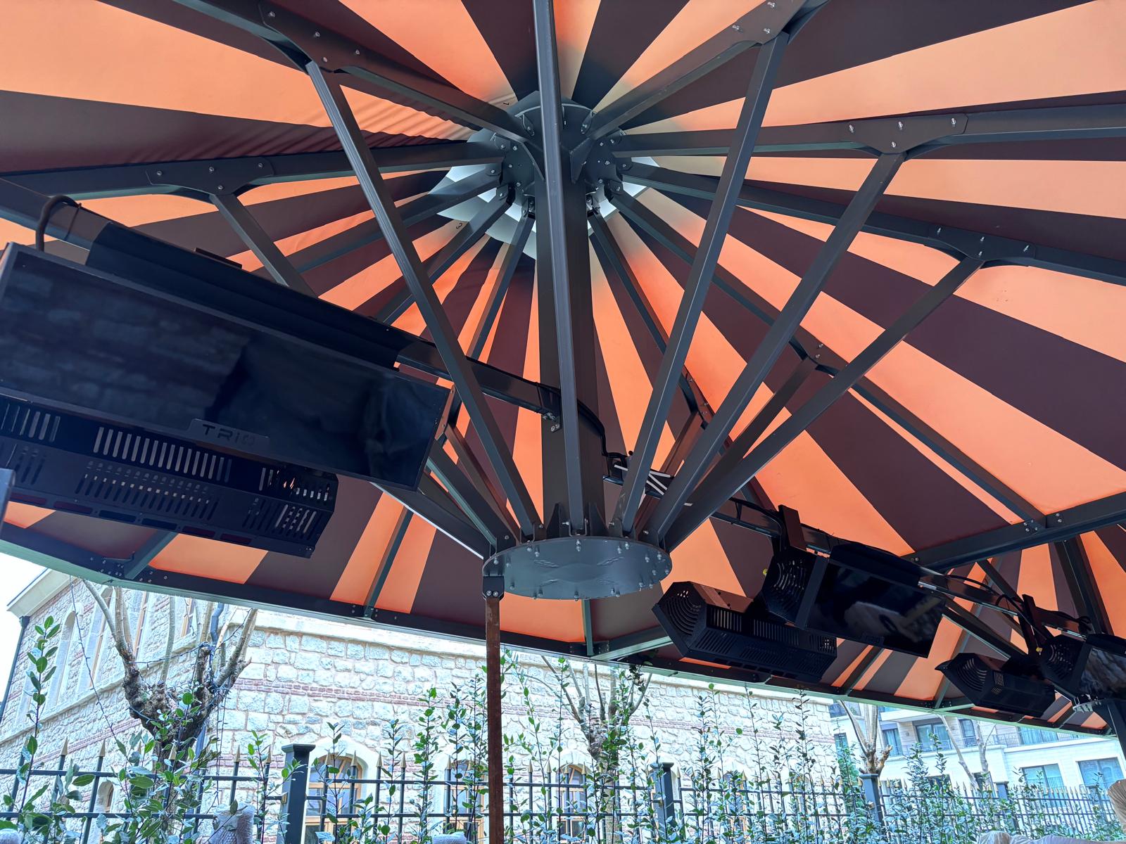 Multiform şemsiyeler; sağlam çelik konstrüksiyonu, yüksek taşıma kapasitesi ve modern tasarımıyla profesyonel açık alan gölgelendirme çözümleri sunar. Mimari projelere uyum sağlayan form seçenekleri ve dayanıklı membran kumaşı ile uzun ömürlü kullanım için tasarlanmıştır.
